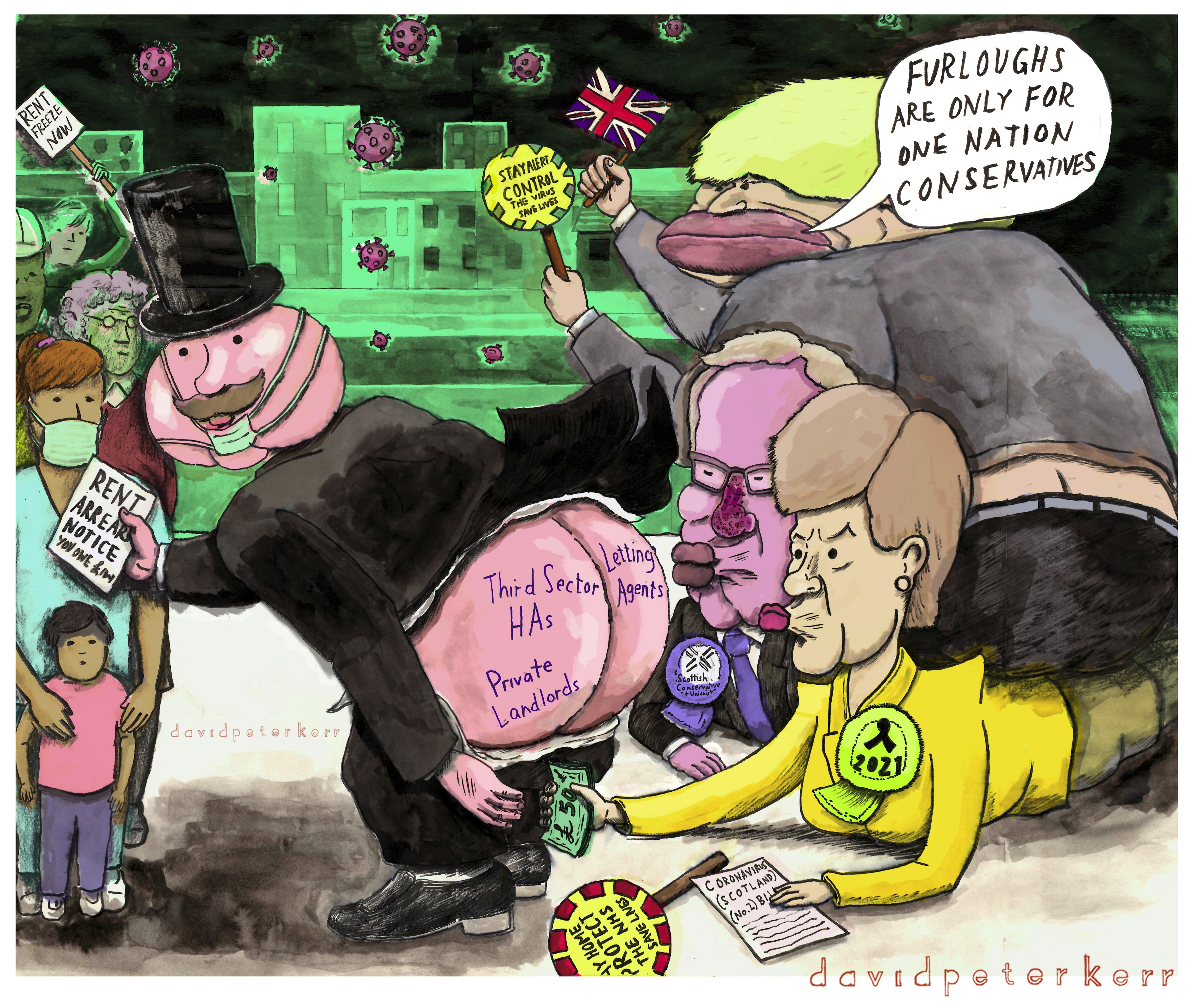 New cartoon on SNP and Scottish Tories screwing tenants over at Hollyrood and BoJo screwing Scotland over at Westminster - for